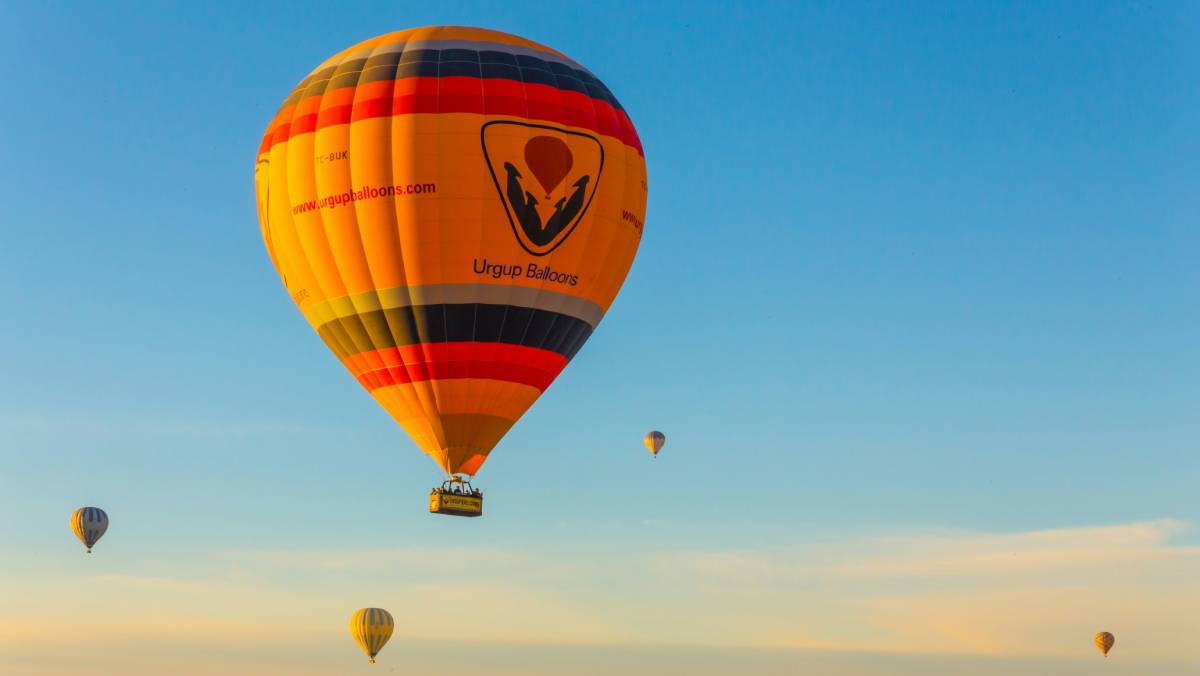 O passeio de balão permite que os turistas admirem as paisagens montanhosas e os cursos d’água límpidos que cortam o terreno.