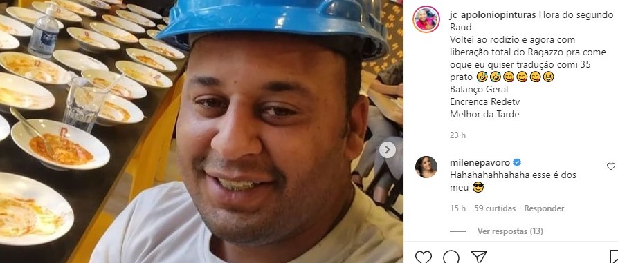 Brasil Se a moda pega, sou o próximo: Homem é expulso de rodízio por comer demais e protesta em vídeo Pagando R$ 19,90 pelo rodízio, o "barato saiu caro" para o estabelecimento depois que João Carlos comeu 15 pratos de massa por Folhapress 16.07.21 as 16:07