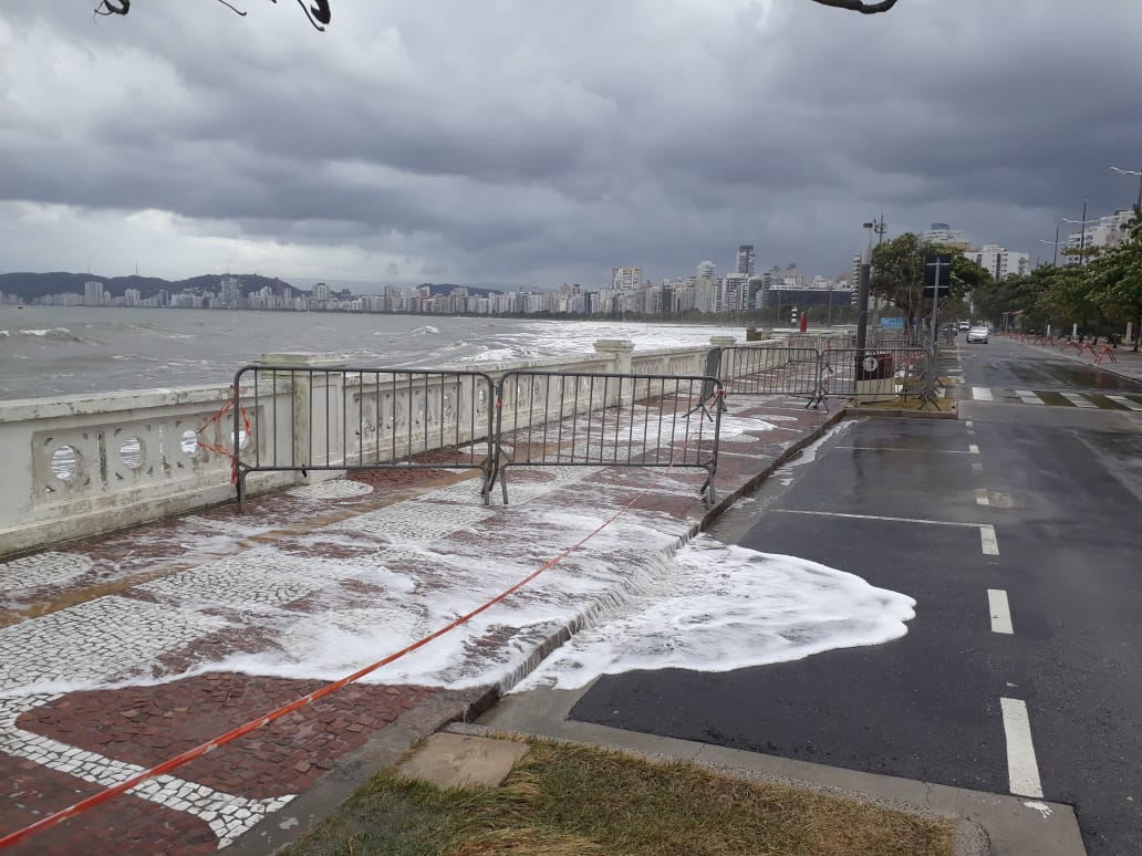 Cotidiano Mar invade Avenida Saldanha da Gama, na Ponta da Praia; assista por Da Reportagem 07.05.20 as 14:31